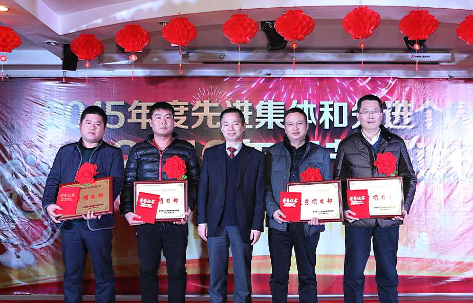 下午,首先由公司黨委書記、副總經理胡六中通報了表彰決定,隨后對公司2015年度先進集體和先進個人,以及獲得集團及以上榮譽的先進集體進行了表彰。