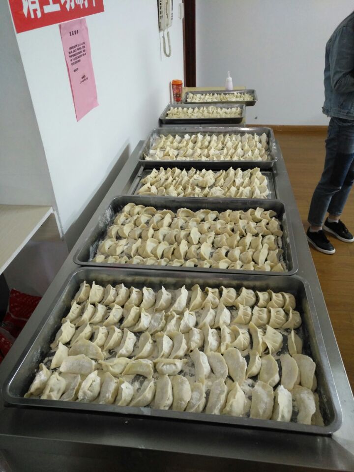 公司工會和后勤保障部為本次活動作了精心的籌備,協(xié)調(diào)職工食堂準備好了各種材料,參加活動的女職工自帶刀具、搟面杖。上午9時許,30多名女職工齊聚職工食堂。她們個個大顯身手,忙得不亦樂乎……你和面,我搟皮,她包餃子,一道道工序有條不紊,只見女職工們一手托著餃子皮,一手夾著肉餡,舞動著靈巧的手指,一個個精致漂亮、形態(tài)各異、不乏創(chuàng)意十足的餃子就在她們手中成形,在托盤里擺開陣勢,形成了一道靚麗的風景。就在你追我趕、歡聲笑語、交流手藝中,1200多個餃子新鮮出爐!有的女職工還不忘把自己的作品拍照傳到微信朋友圈中“曬曬”。臨近中午,餃子下鍋了,誘人的香氣四散開來,令人垂涎欲滴。女職工們你盛一碗,我盛一碗,與剛剛下班的男職工們圍座在一起,一邊回味著活動的快樂,一邊品嘗著勞動的成果,其樂融融地盡情共享餃子盛宴,共同度過一個輕松愉快且有意義的節(jié)日。