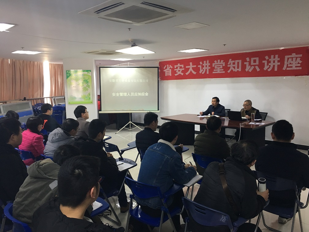 12月21日上午“省安大講堂”—安全管理及施工用電管理培訓在職工之家開課。本次培訓由安全管理部經理王岳濤授課,公司機關、分公司、項目部相關人員共30余人參加。