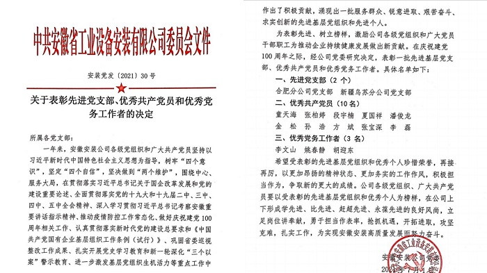 今年以來,趙永峰同志以黨史學習教育和慶祝中國共產黨成立100周年為契機,以集團黨建“領航計劃”為抓手,創新型開展支部黨建工作,多措并舉,勠力同心,真抓實干,積極探索項目黨建工作新載體、新途徑,以深入開展創先爭優“黨員示范崗”等主題實踐活動為載體,以“我為群眾辦實事”實踐活動帶領支部班子成員創造性地開展一系列黨建工作,用實際行動踐行初心使命,用真抓實干檢驗黨史學習教育成效。積極發揮了“一名黨員就是一面旗幟,一個支部就是一座堡壘”的重要作用。他所在合肥分公司被建工集團授予“先進集體”光榮稱號,合肥分公司黨支部被安徽省工業設備安裝有限公司黨委評為“先進黨支部”。趙永峰同志榮獲安徽建工集團“勞動模范”等多項榮譽稱號。