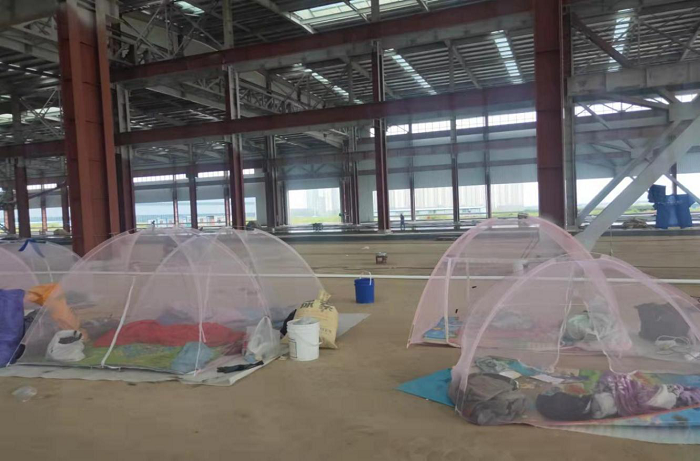 地坪壓光師傅住在現(xiàn)場(chǎng)