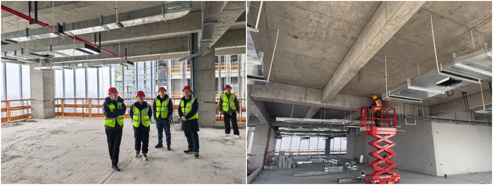 建工安裝合肥分公司桃花科創產業園EPC項目二期二標水暖電工程項目同樣是一派忙碌有序的景象。為確保節后安全順利復工復產,項目部組織開展了復工復產專項檢查,重點對臨電、各類設備、消防、安全防護、應急儲備、作業環境、施工方案等方面進行系統排查。截至目前,水電暖通班組現場施工人員已集結完畢,各類機械設備已開工作業,橋架、風管、空調設備安裝等各項施工任務按計劃有序推進。現已完成A3號樓新風、暖通風管、橋架、衛生間給排水支管、污廢水立管等安裝工作,預計2月底完成A4號樓新風、空調、橋架的安裝工作。