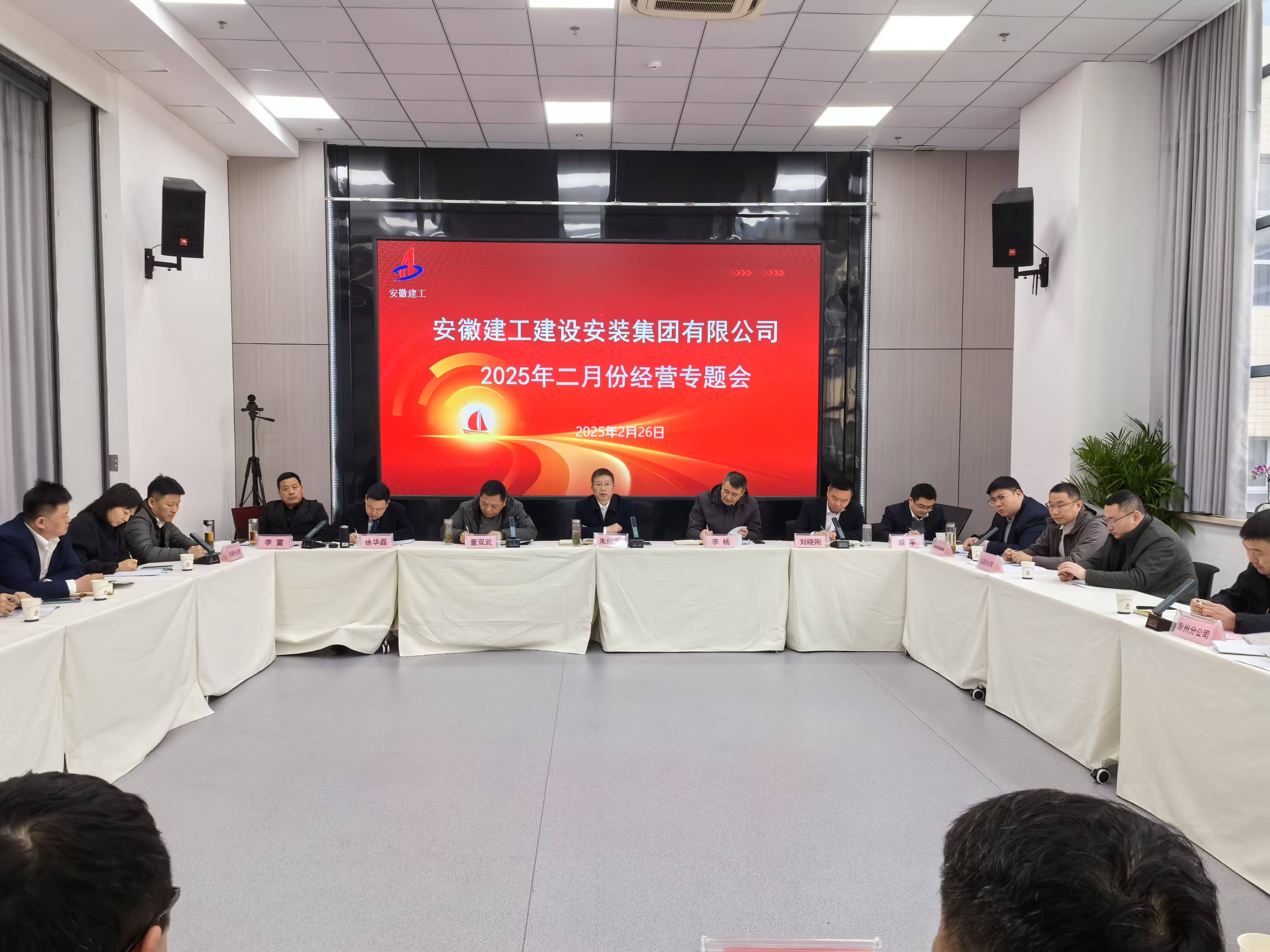 2月26日上午,建工安裝集團召開2025年二月份經營專題會,公司黨委書記、董事長朱珍宏出席會議并講話,黨委委員、副總經理劉曉剛主持會議。