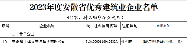 【喜報】建工安裝入選“2023年度安徽省優秀建筑業企業”