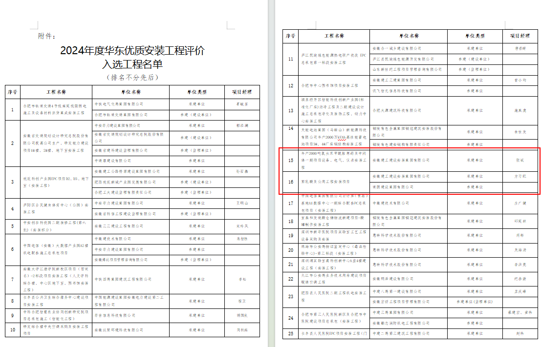 近日,2024年度華東優(yōu)質(zhì)安裝工程評價(jià)入選工程名單公布。建工安裝蚌埠分公司承建的輝隆年產(chǎn)2000噸氯蟲苯甲酰胺原藥及中間體一期項(xiàng)目設(shè)備、電氣、儀表安裝工程成功入選。