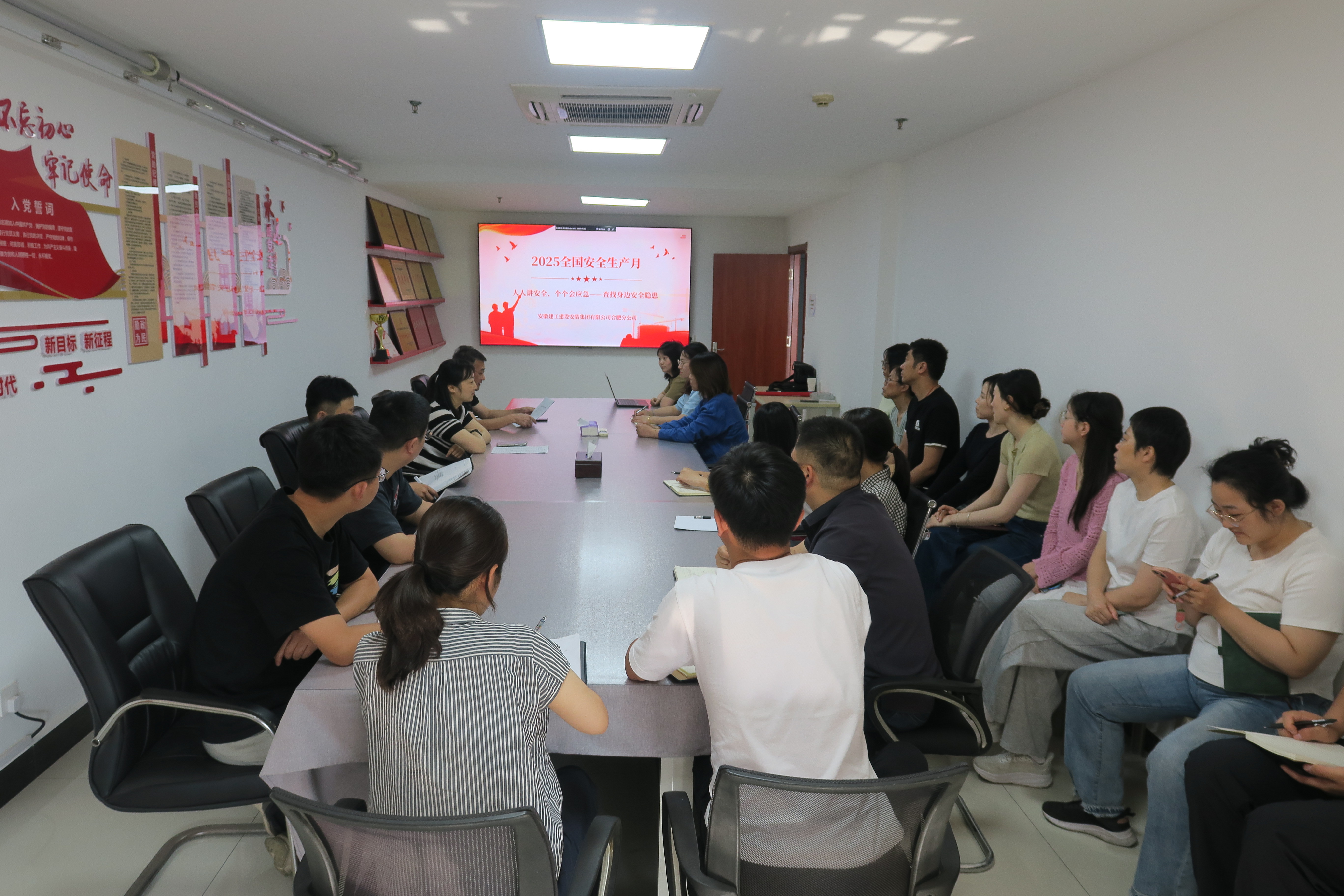 6月3日上午,建工安裝合肥分公司舉行2025年"安全生產(chǎn)月"活動(dòng)啟動(dòng)儀式。活動(dòng)主題為“人人講安全、個(gè)個(gè)會(huì)應(yīng)急——查找身邊安全隱患”。通過(guò)動(dòng)員宣誓、全員簽名、觀看安全生產(chǎn)警示教育片全面吹響安全生產(chǎn)攻堅(jiān)號(hào)角。