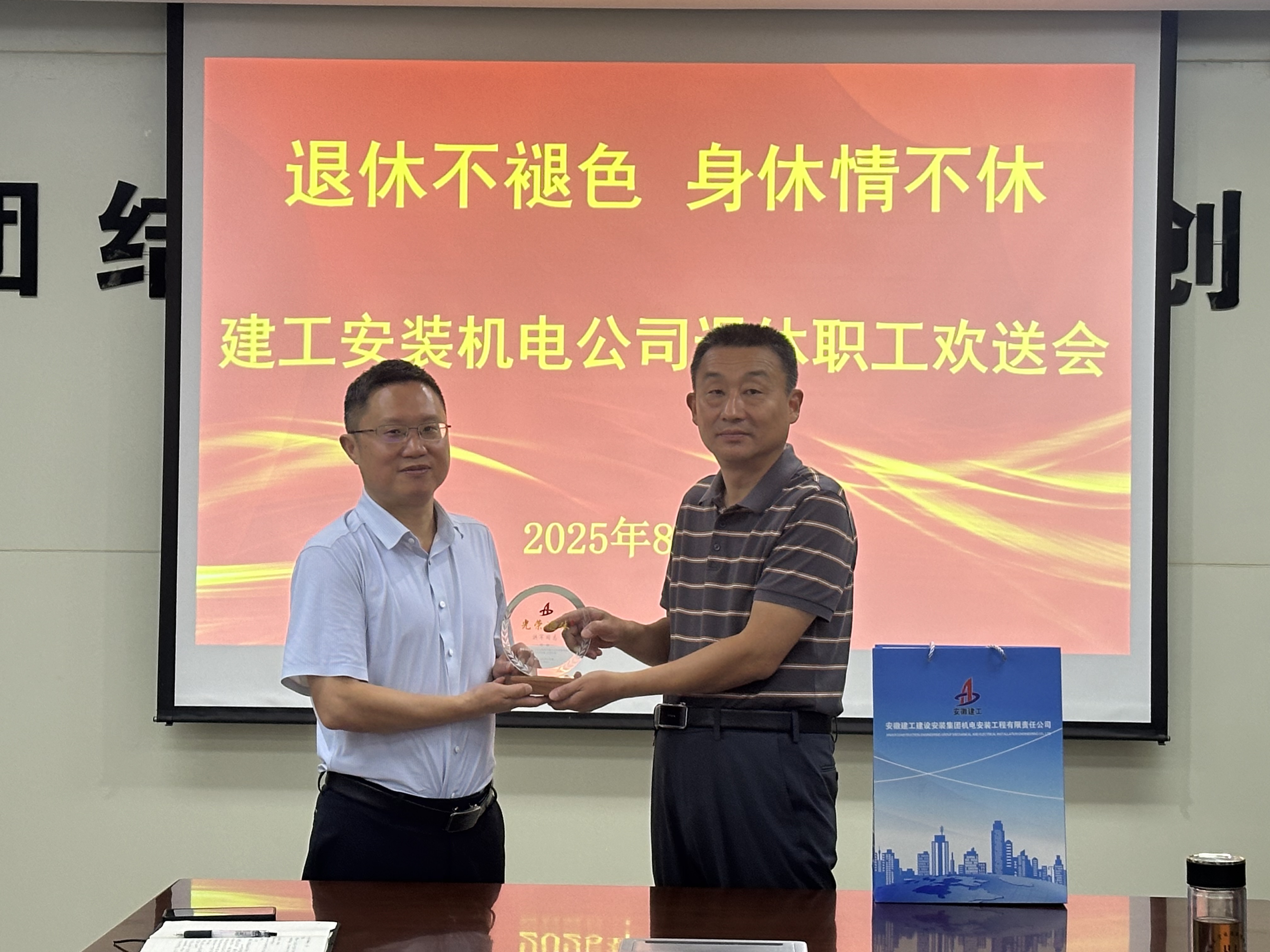 退休不褪色,身休情不休 —— 建工安裝機電公司舉辦退休職工退休儀式?